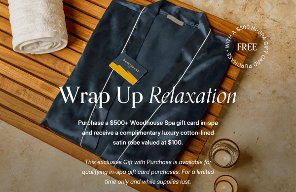 Whether for yourself or someone special, a Woodhouse Spa gift card is the perfect way to share the gift of relaxation, renewal, and well-being. Every service is tailored to create an unforgettable escape.